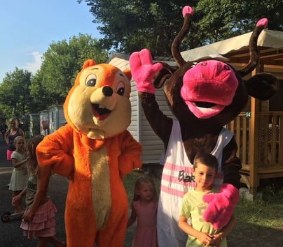 Durant la haute saison, KIBOO et BAKITA, les 2 séduisantes mascottes du camping, viennent vous voir le MARDI et le JEUDI entre 19h30 et 20h15 pour le plus grand bonheur des grands et des petits.